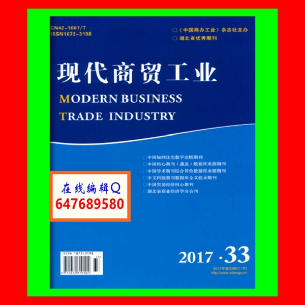 《现代商贸工业》杂志是经国家新闻出版总署批准,中国商办工业杂志社主管、主办,湖北省商业经济学会、武汉大学地方政府管理与公共事务研究中心、华中科技大学创新发展研究中心协办,国内外公开发行的国家级大型政策指导与理论研究的综合性学术期刊,是中国经济管理类核心期刊。国内统一刊号:CN 42-1687/T,国际标准刊号:ISSN 1672-3198,邮发代号:38-450,1980年创刊,大16开本,旬刊。