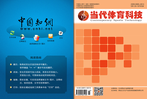 《当代体育科技》杂志是经国家广播电视总局批准,由中共黑龙江省委宣传部主管、黑龙江文化产业投资控股集团有限公司主办的G8体育综合类专业学术理论期刊。国际标准刊号:ISSN 2095-2813,国内统一刊号:CN 23-1579/G8,邮发代号:14-131。主要栏目:体育资讯、学术前沿、体育产业、体育场馆、体育论坛、体育教育、运动训练、人体科学、体育经济、体育人文、学校体育、社会体育、民族体育、经济管理、交流园地、体育综述、博硕论坛等。