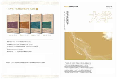 《大学》(社会科学版):开展经济学、政治学、法学、历史学、社会学等学科研究,主要栏目:总编推荐、综艺大观、流行趋势、人文色域、优秀作品、专家视点、锦绣文章、人物生活、学术争鸣、研究生园地等;《大学》(自然科学版):开展天文学、物理学、化学、地球科学、生物学等学科研究,主要栏目:专题特稿、文献综述、数学物理、天文科学、生物化学与材料科学等;《大学》(教学与教育版):开展高等教育、师范教育研究和反映教育改革与发展以及相应实践成果的综合性学术期刊,主要栏目:专题特稿、高端访谈、学科教学、教学艺术、教学管理、高校思政、人才培养、教师发展等。本刊系中文科技期刊数据库、中国核心期刊(遴选)数据库、中国学术期刊(光盘版)数据库、中国学术期刊综合评价数据库、中国知网(CNKI)期刊全文数据库、万方数据知识服务平台等大型权威学术数据库收录期刊。在本刊发表的论文可在职称评定、晋升考核以及岗位竞聘中起到重要科研认定作用。